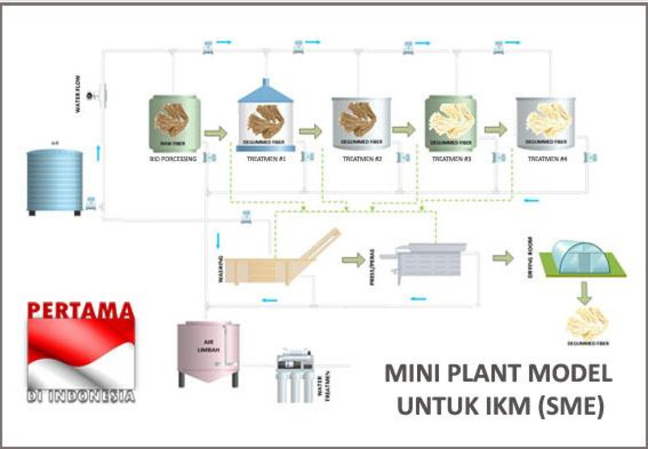 Mini Plant Processing Bio Degumming IKM (Industri Kecil & Menengah), untuk pemrosesan Bio Deguming dan Proses Treatment lainnya sehingga menjadi Produk Degummed Fiber siap "COTTONIZATION".